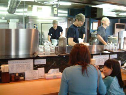 店内は、活気があります。同じTシャツ、バンダナを装着。